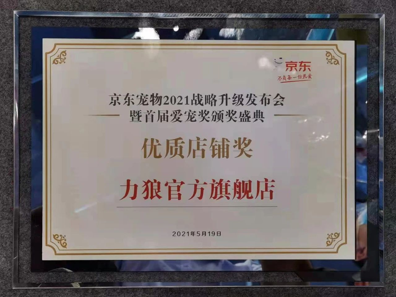 展會同期,在京東寵物2021年戰(zhàn)略升級發(fā)布會暨首屆“愛寵獎”頒獎盛典上,我公司力狼官方旗艦店榮獲“優(yōu)質(zhì)店鋪獎”,再次獲得了行業(yè)同仁的認(rèn)可。