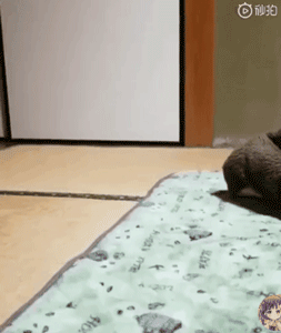 大概是覺得好玩,Kuma總是用前腳推著抹布在地板上走來走去,你們看看這姿勢,相當標準了……