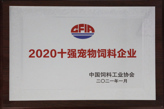 公司再次被評為“2020全國十強飼料企業”稱號
